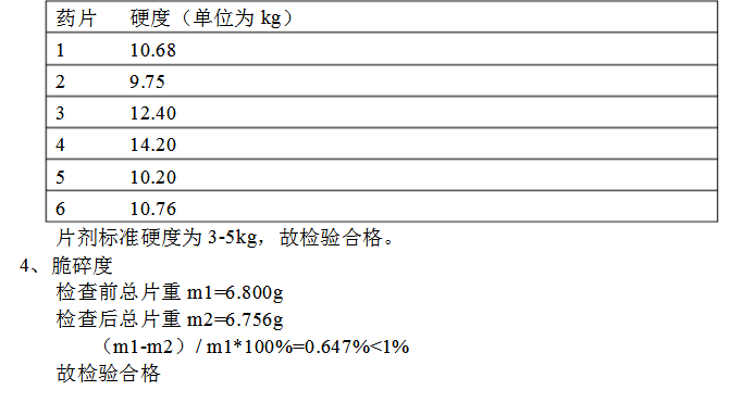 2、實驗中阿司匹林6片均在3min之內全部崩解,按藥典規定,壓制片應在15min內崩解完全,故檢驗合格
